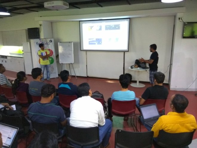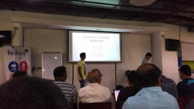 ChandanKumar talked about Fedora Labs. Fedora labs have the selection of curated bundles of purpose-driven software and content as curated and maintained by members of the Fedora Community. These may be installed as standalone full versions of Fedora or as add-ons to existing Fedora installations. From fedora-labs, we were focused on Fedora Scientific (open source software computing) which comes with featured application like ipython, pandas, Gnuplot, Matplotlib, R , latex, etc can be useful for machine learning.